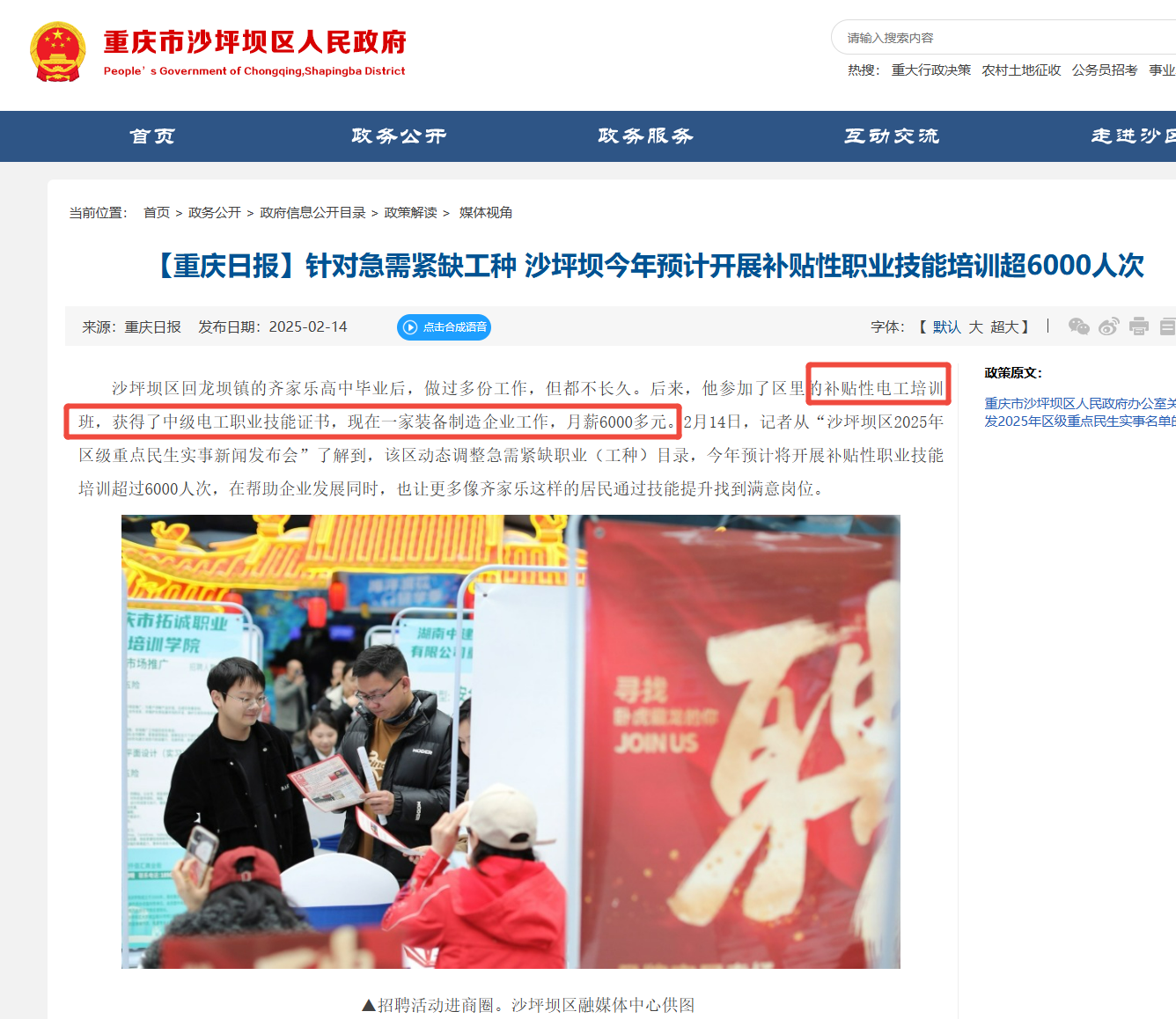 沙坪坝区回龙坝镇的齐家乐高中毕业后,做过多份工作,但都不长久。后来,他参加了电工培训,获得了中级电工职业技能证书,现在一家装备制造企业工作,月薪6000多元。