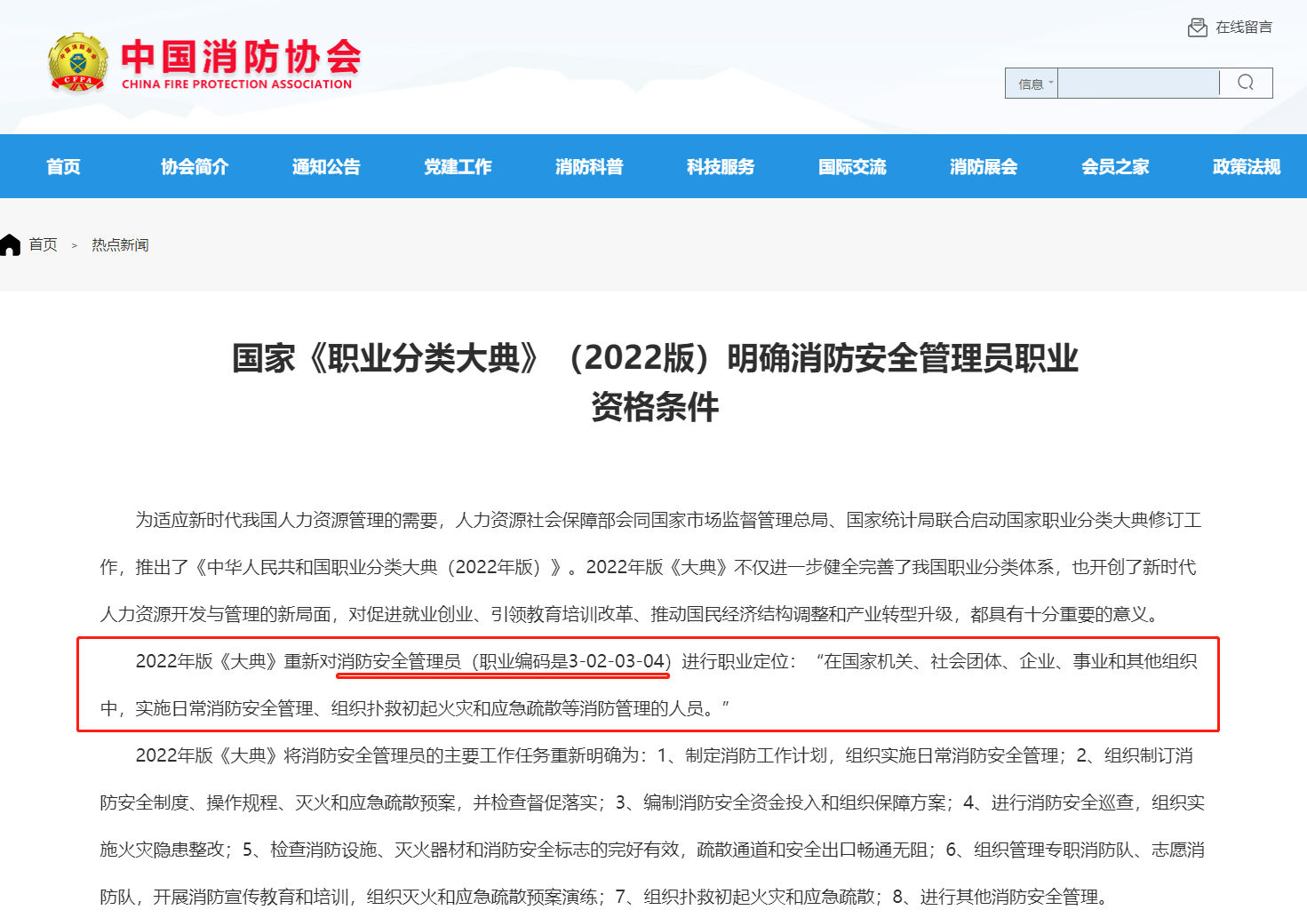 在国家《职业分类大典》2022版中,明确消防安全管理员职业资格条件。
