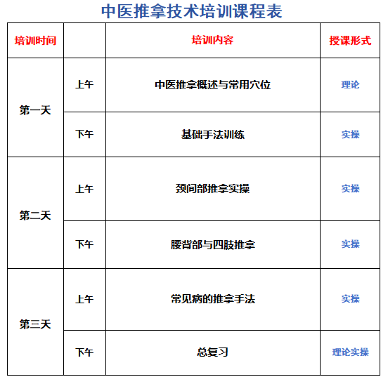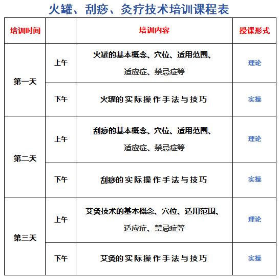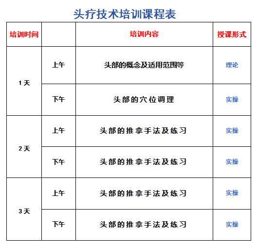 线下3天特色实操技术培训,如:头疗技术、火罐刮痧灸疗、中医推拿技术(任选一项)。