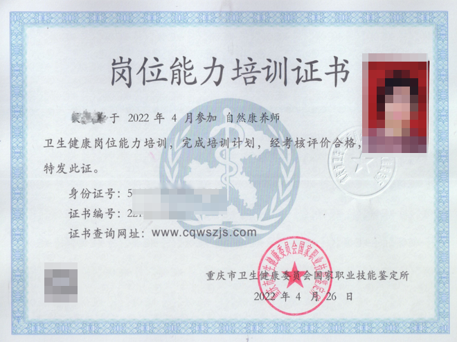 发证机关:重庆市卫生健康委员会国家职业技能鉴定所