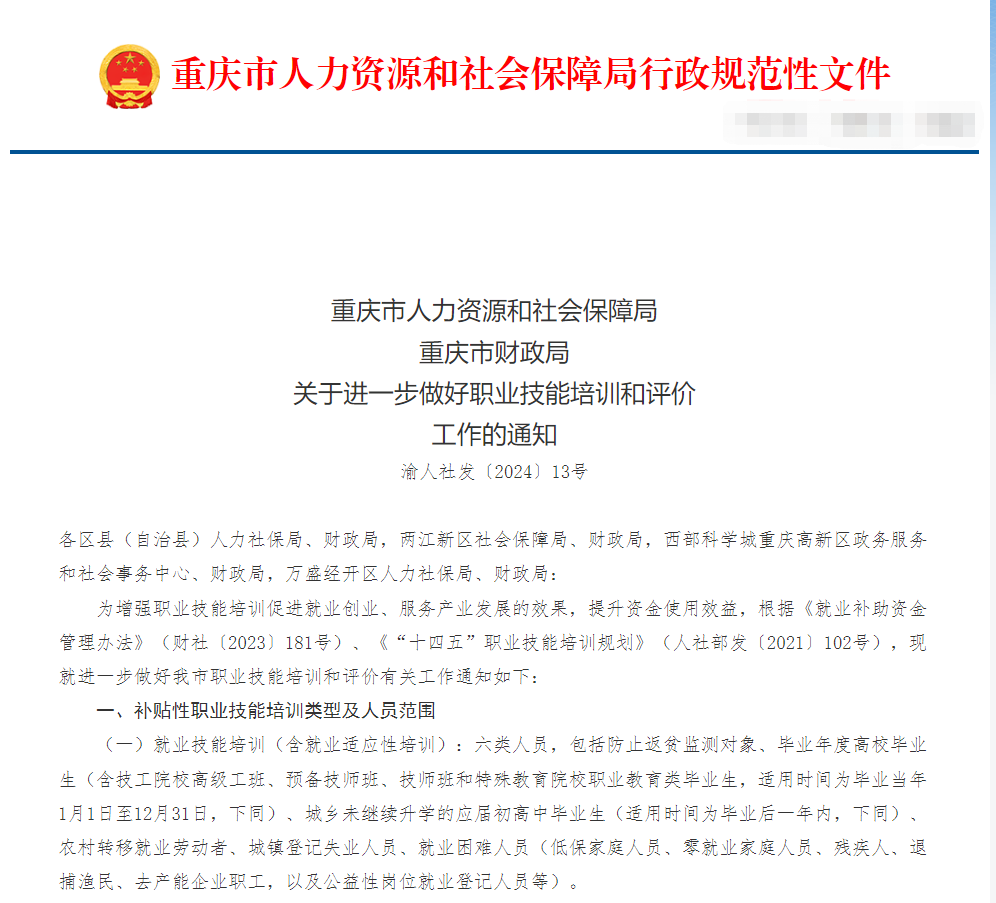 为促进就业、创业以及产业发展,重庆市人社局根据《“十四五”职业技能培训规划》发布《通知》,符合条件者提供就业补助专项资金补贴职业技能培训。