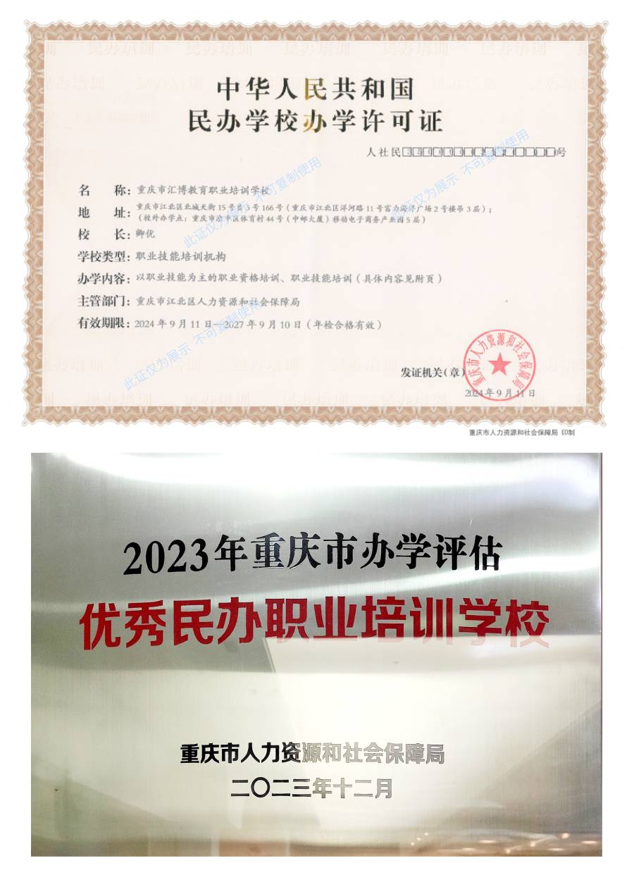 汇博学校由市民政局批准成立,市人社局主管的市级培训学校。在2023年底,还被市人社局评为【优秀民办职业培训学校】。